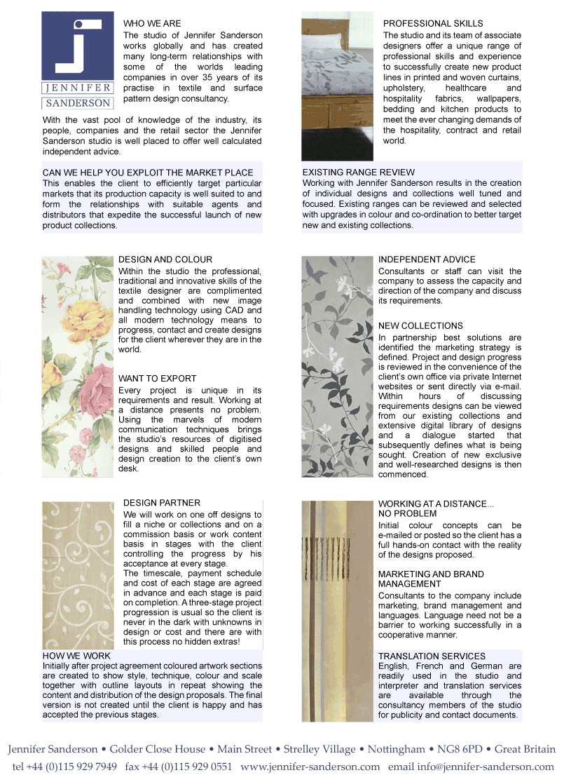 | Innovators of quality designs for home and contract furnishings industry |